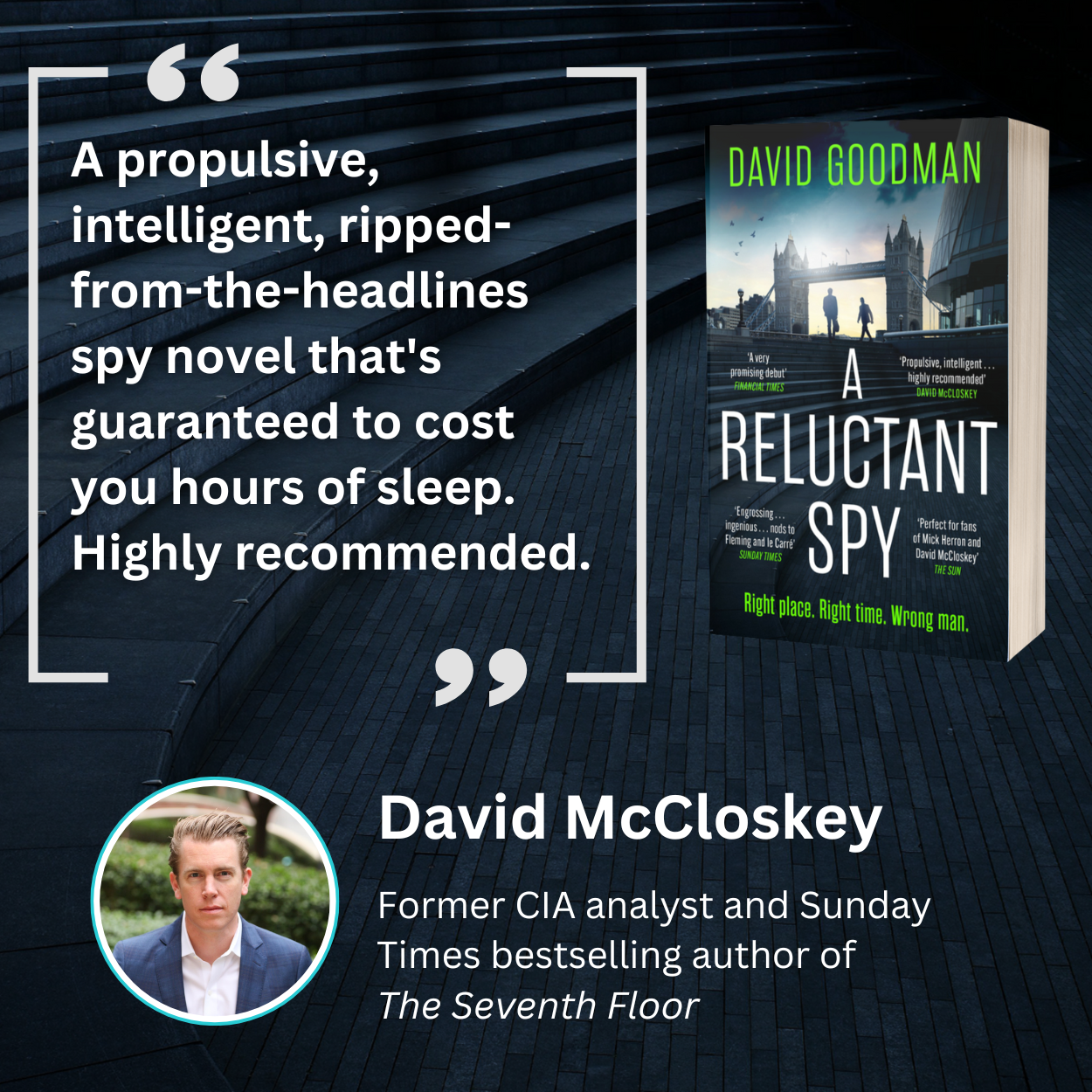 - Celebrated Scottish crime author Val McDermid, in her role as judge of the McDermid Debut Award, said “If you think you’ve read every twist in every area of the genre, think again. Our winner has found a new take and delivers it with pace and propulsive storytelling. David Goodman’s A Reluctant Spy is a sparkling new entry in the canon, with a vivid and unfamiliar setting as well as a gripping cast of characters. Don’t start it last thing at night, or you might miss breakfast.”