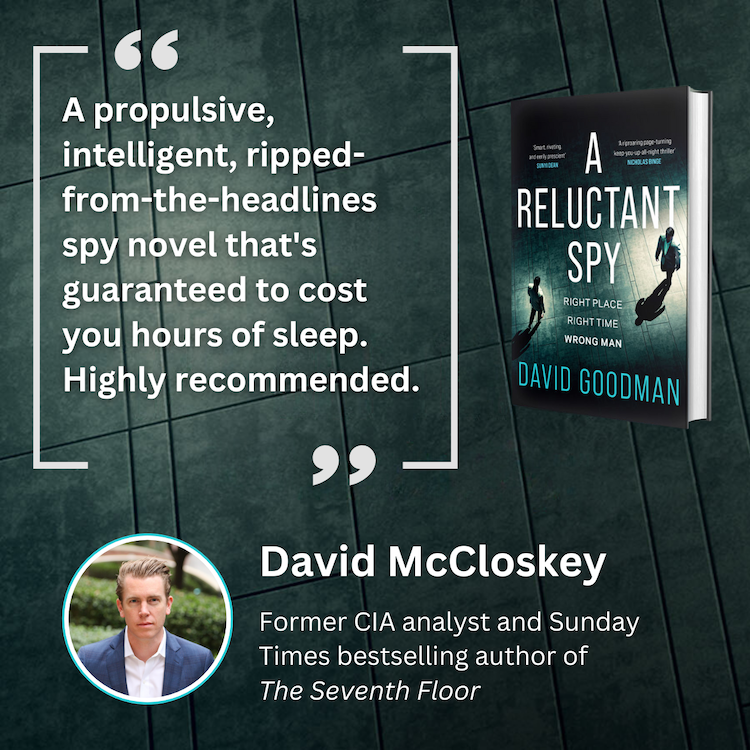 I was also extremely pleased to get this wonderful blurb from fellow spy novelist David McCloskey, who I met back in January.