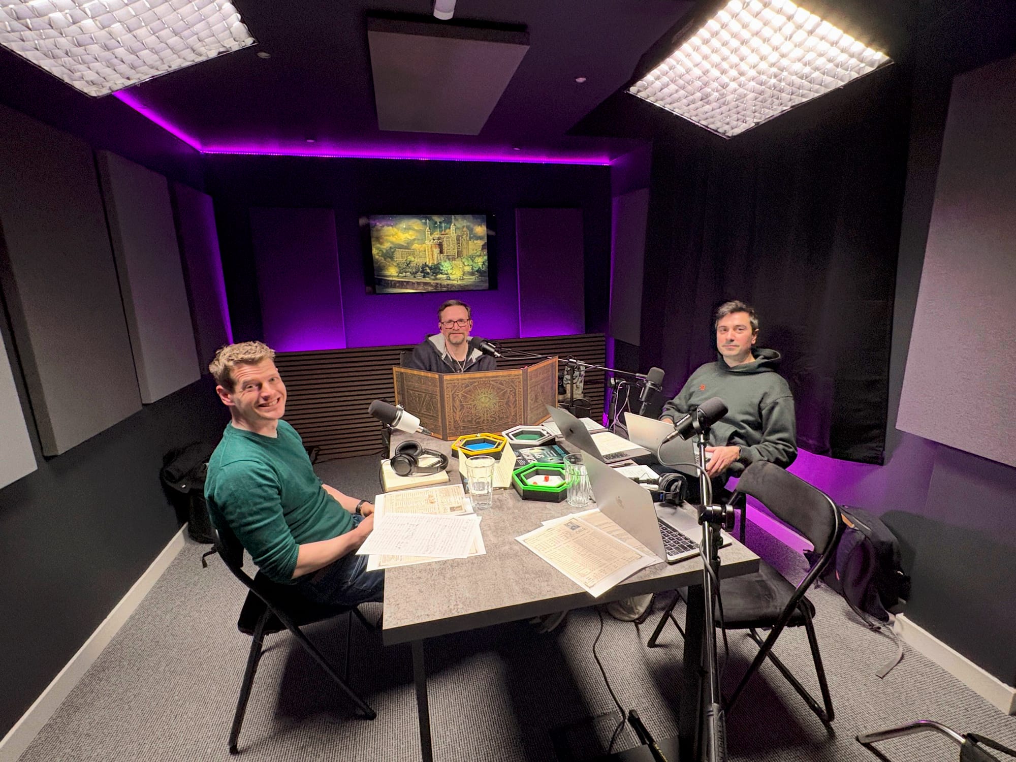 Nick, Marco and I are in a regular RPG group together, with Tariq occasionally guest-starring, but recording in a studio was a very different vibe indeed and a whole lot of fun. It was also extra-strange for me, since the studio was in the same office space that I first worked when I moved back to Edinburgh from London, sixteen years ago.